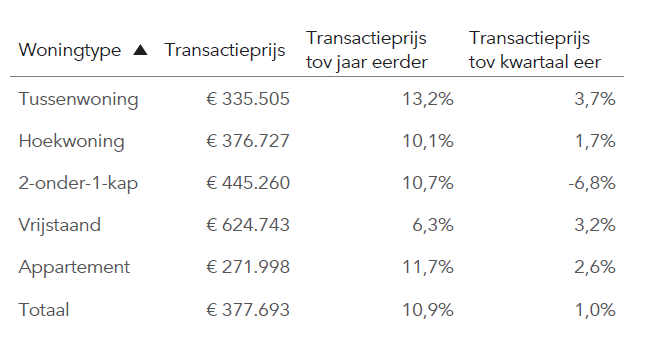 - Hoekwoning: €370.000 (+5,4% j-o-j)