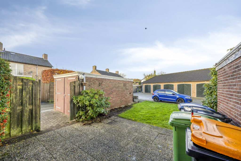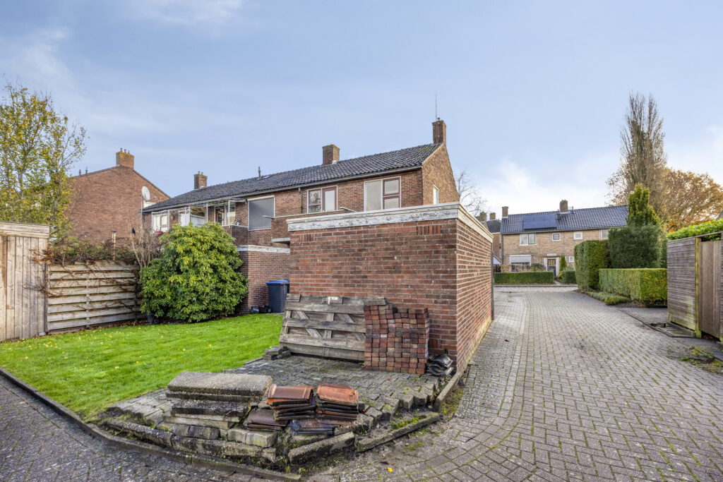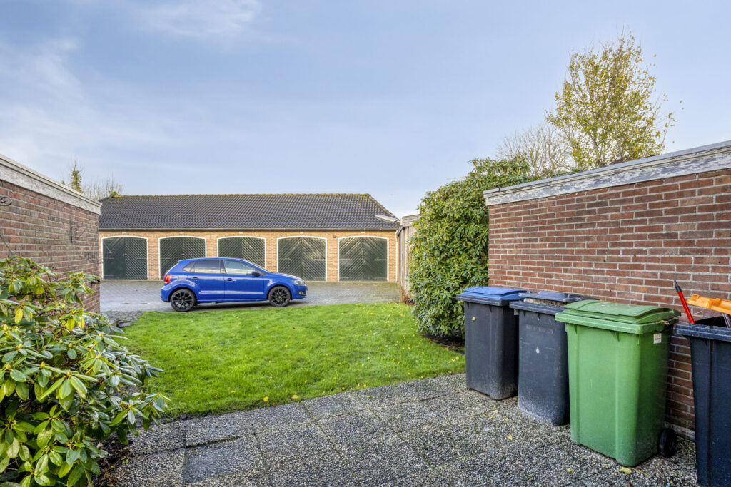 De woning is gelegen op een perceel van circa 190 m² en beschikt over een vrijstaande stenen garage én een stenen berging. De achtertuin is bereikbaar via een achterom en biedt voldoende ruimte om naar wens in te richten.