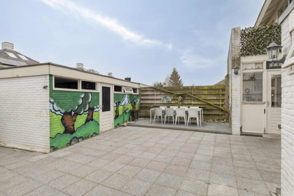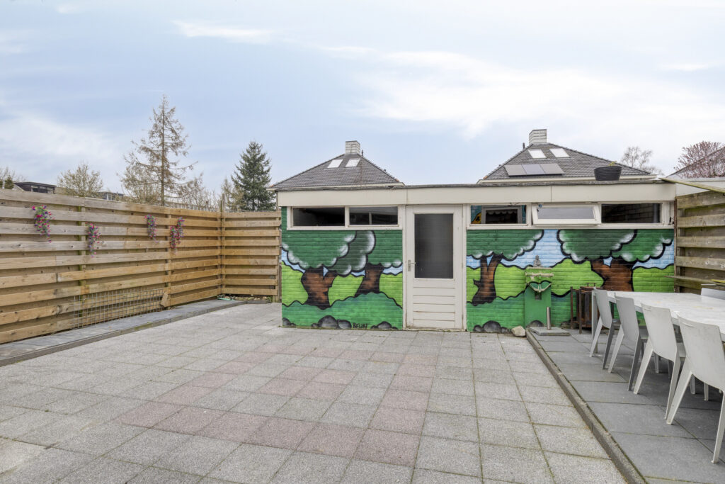 De woning staat op een ruim perceel van 314 m² en beschikt over een aangebouwde garage én een vrijstaande stenen berging – ideaal voor opslag, hobby’s of het stallen van fietsen.