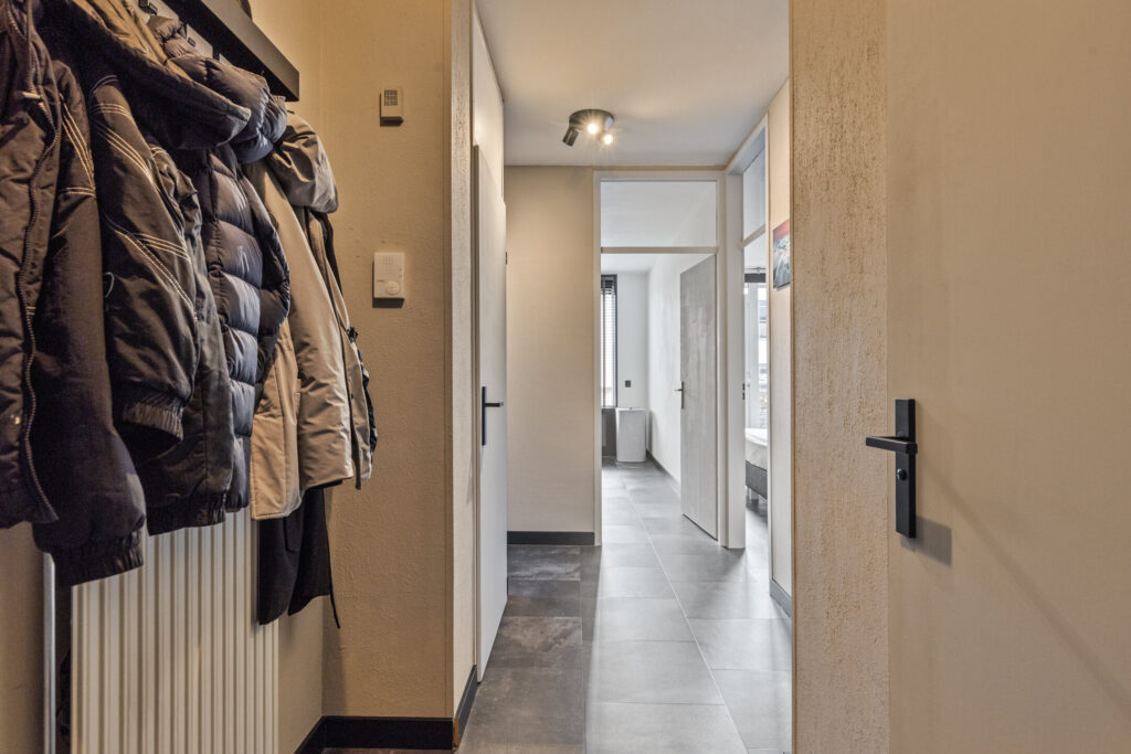Entree/hal met meterkast, bijkeuken, cv-ruimte en toegang tot de woonkamer. De lichte woonkamer met grote raampartijen biedt toegang tot een balkon met fraai uitzicht over de straat. De moderne open keuken is uitgerust met diverse inbouwapparatuur. Er zijn twee slaapkamers, waarvan één toegang heeft tot het balkon. De badkamer beschikt over een inloopdouche en modern wastafelmeubel.